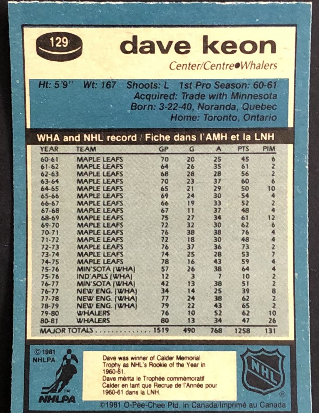 Card #129 NHL, hockey, vintage, hall of fame, OPC