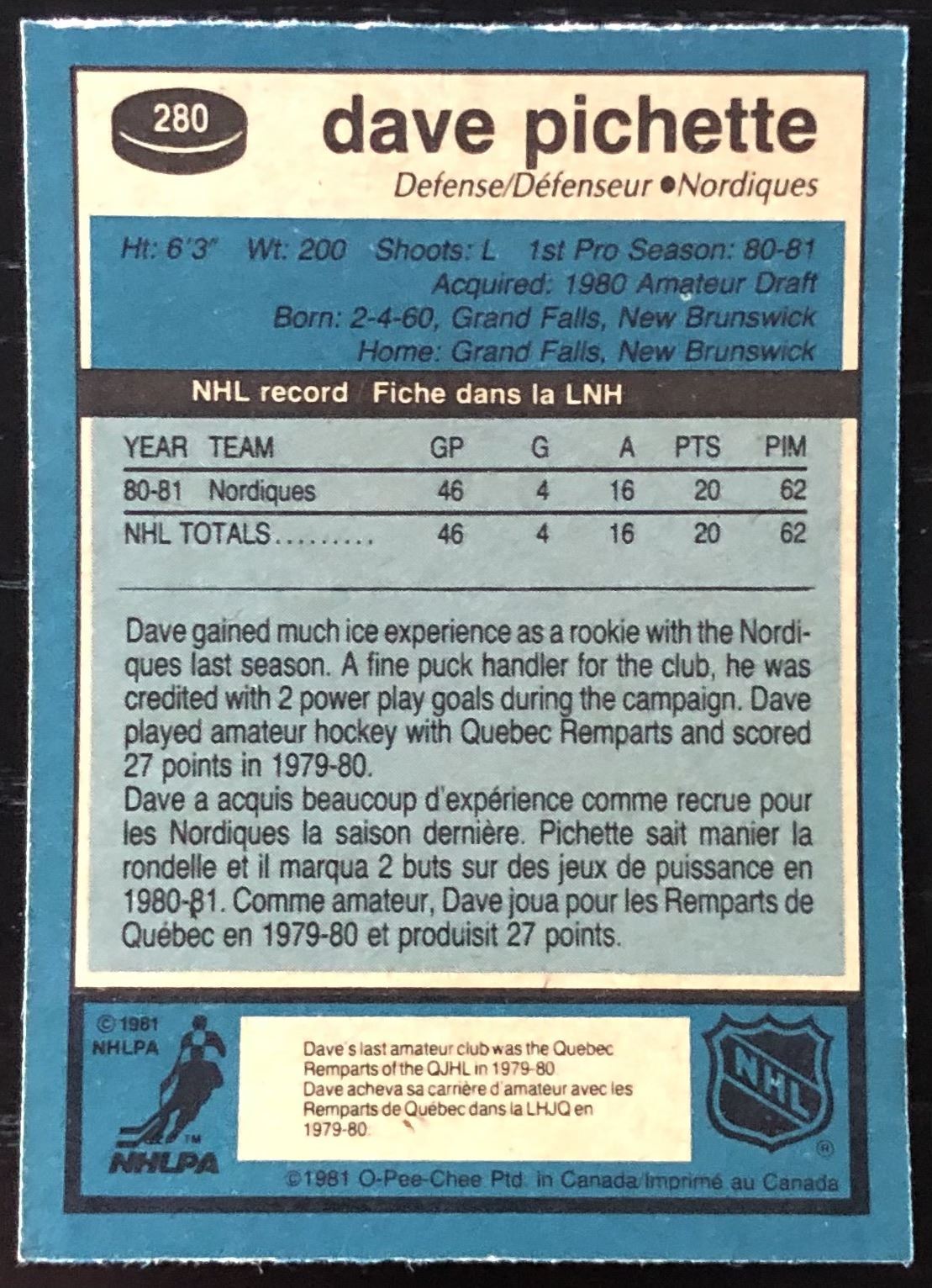 Card #280 NHL, hockey, OPC, vintage, rookie