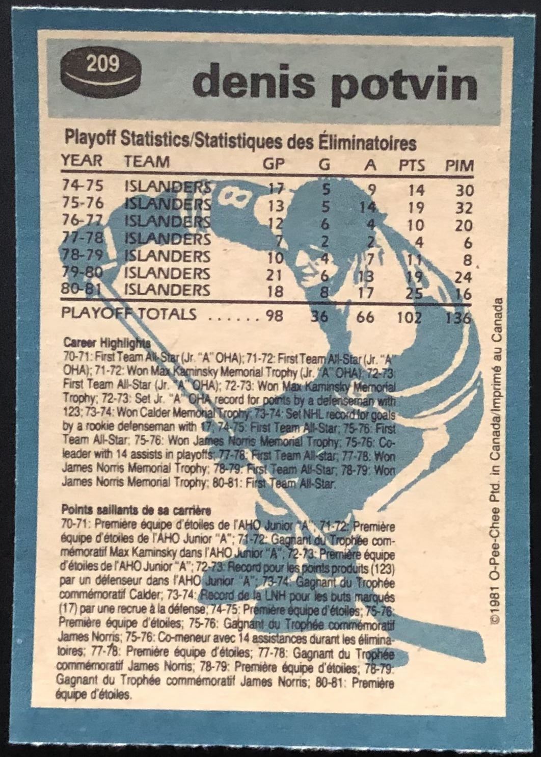 Card #209 OPC, vintage, NHL, hockey, hall of fame