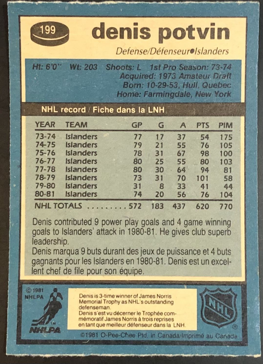 Card #199 hockey, NHL, vintage, OPC, hall of fame