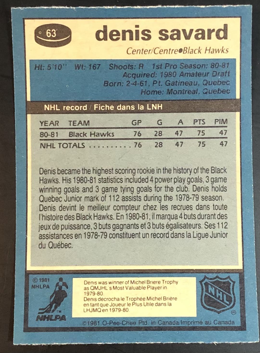 Card #63 OPC, vintage, NHL, hockey, hall of fame, rookie