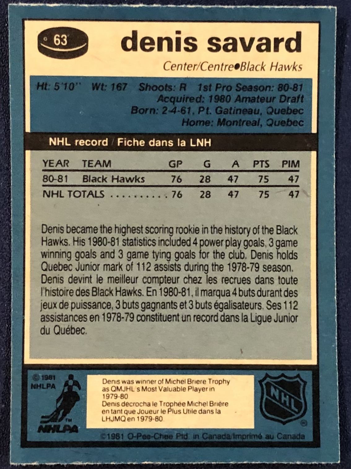 Card #63 NHL, hockey, OPC, vintage, hall of fame , rookie
