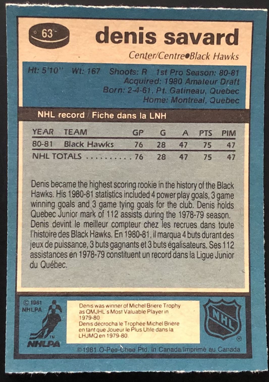 Card #63 NHL, hockey, vintage, OPC, hall of fame, rookie