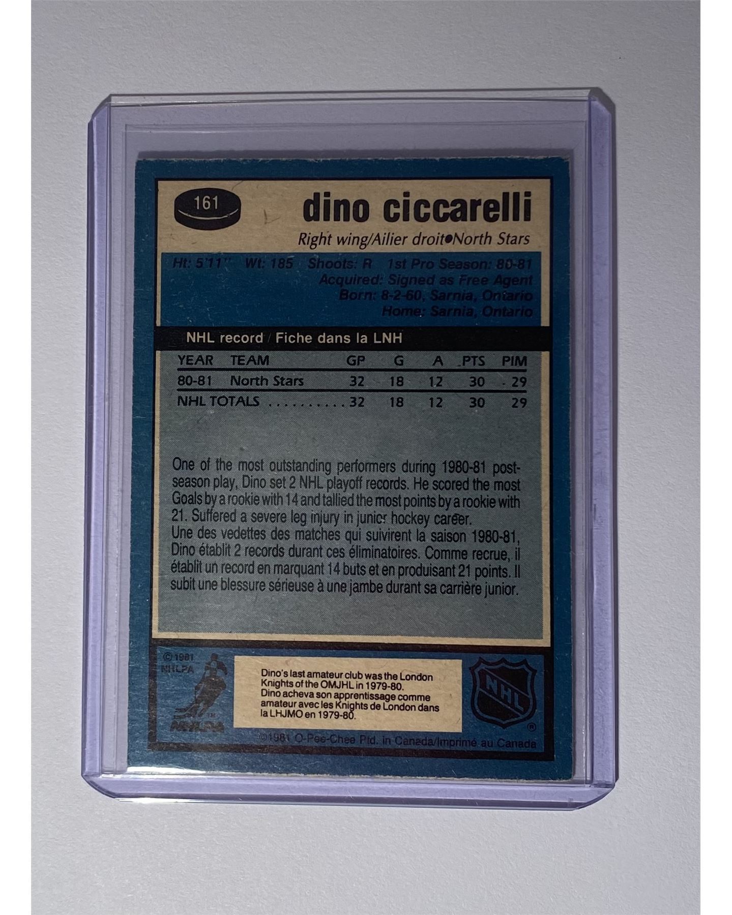 Dino Ciccarelli (RC)(HOF), '81-82 O-Pee-Chee, card #161