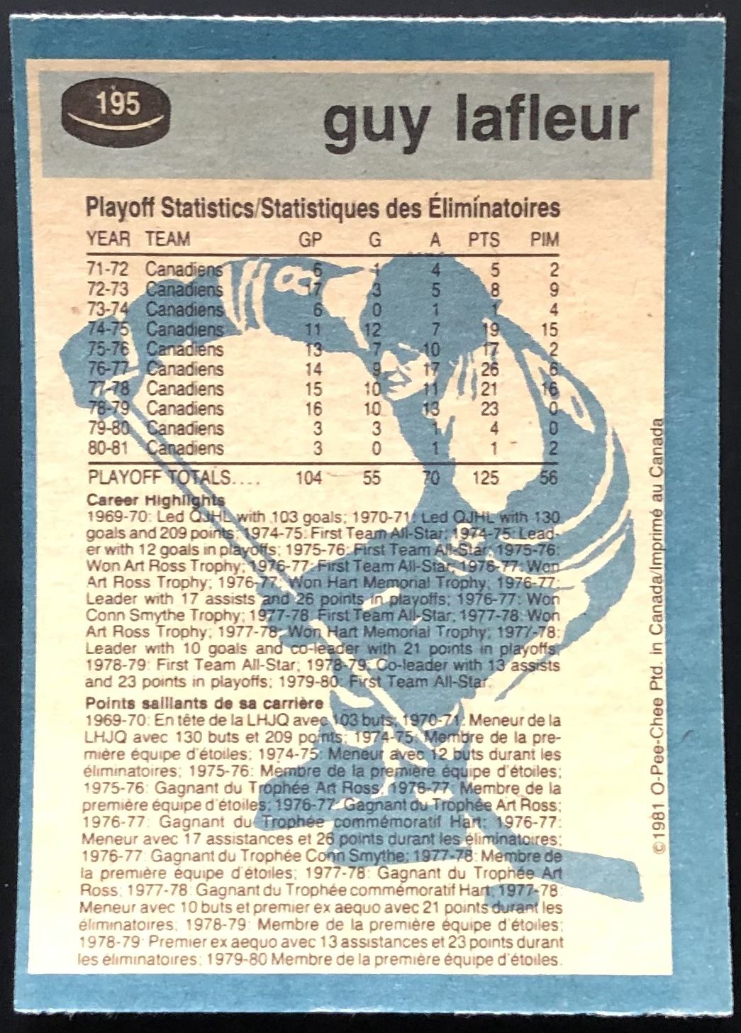Card #195 NHL, hockey, OPC, vintage, hall of fame