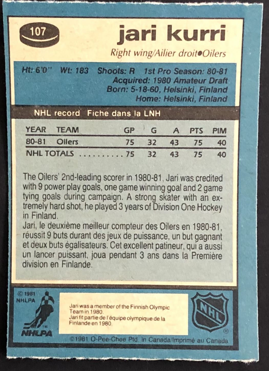 Card #107 NHL, hockey, vintage, hall of fame, OPC, rookie