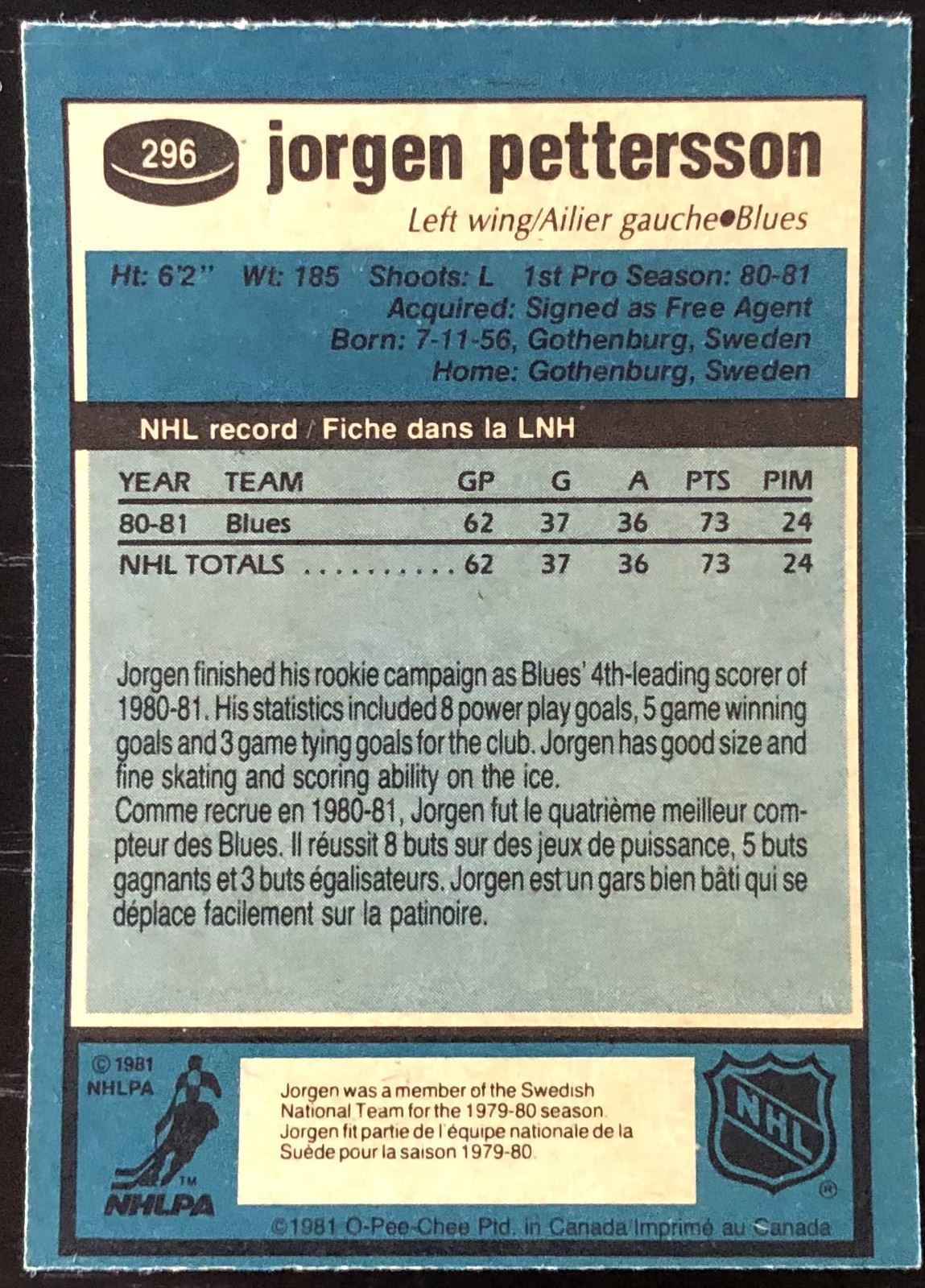Card #296 NHL, hockey, OPC, vintage, rookie