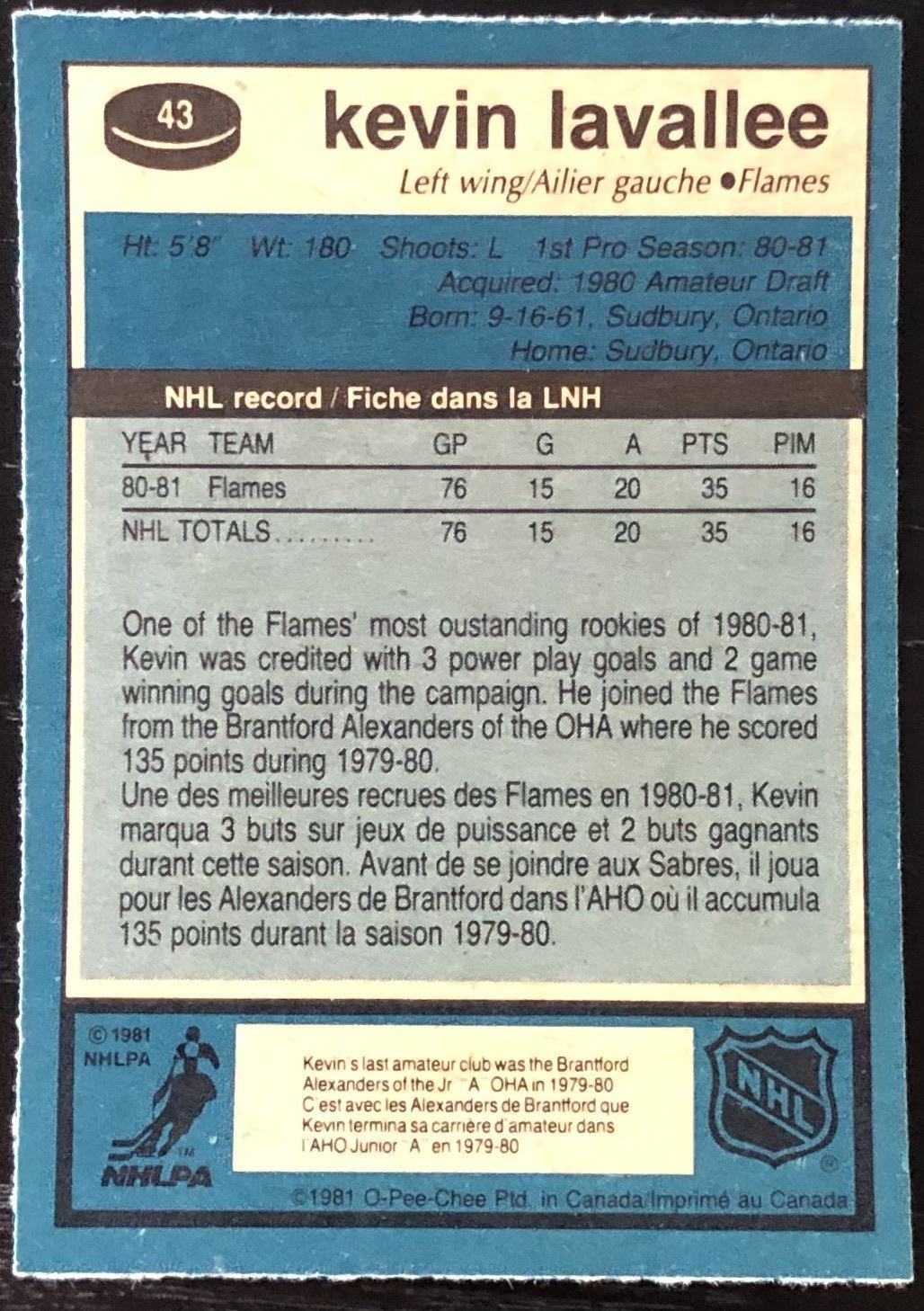 Card #43 NHL, hockey, OPC, vintage, rookie