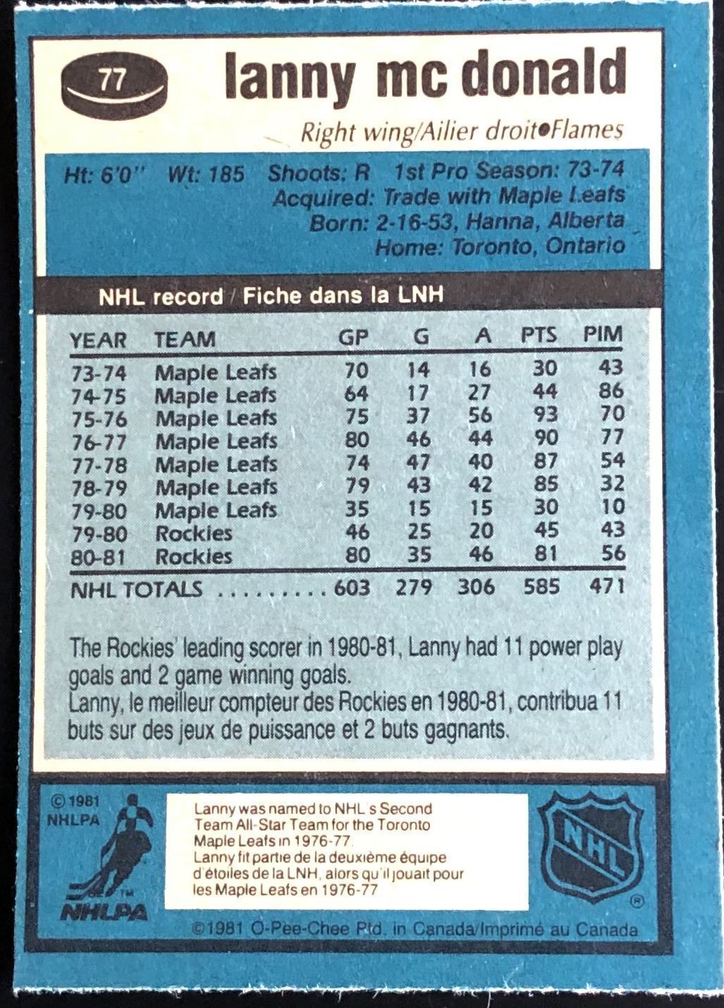 Card #77 NHL, hockey, vintage, OPC, hall of fame