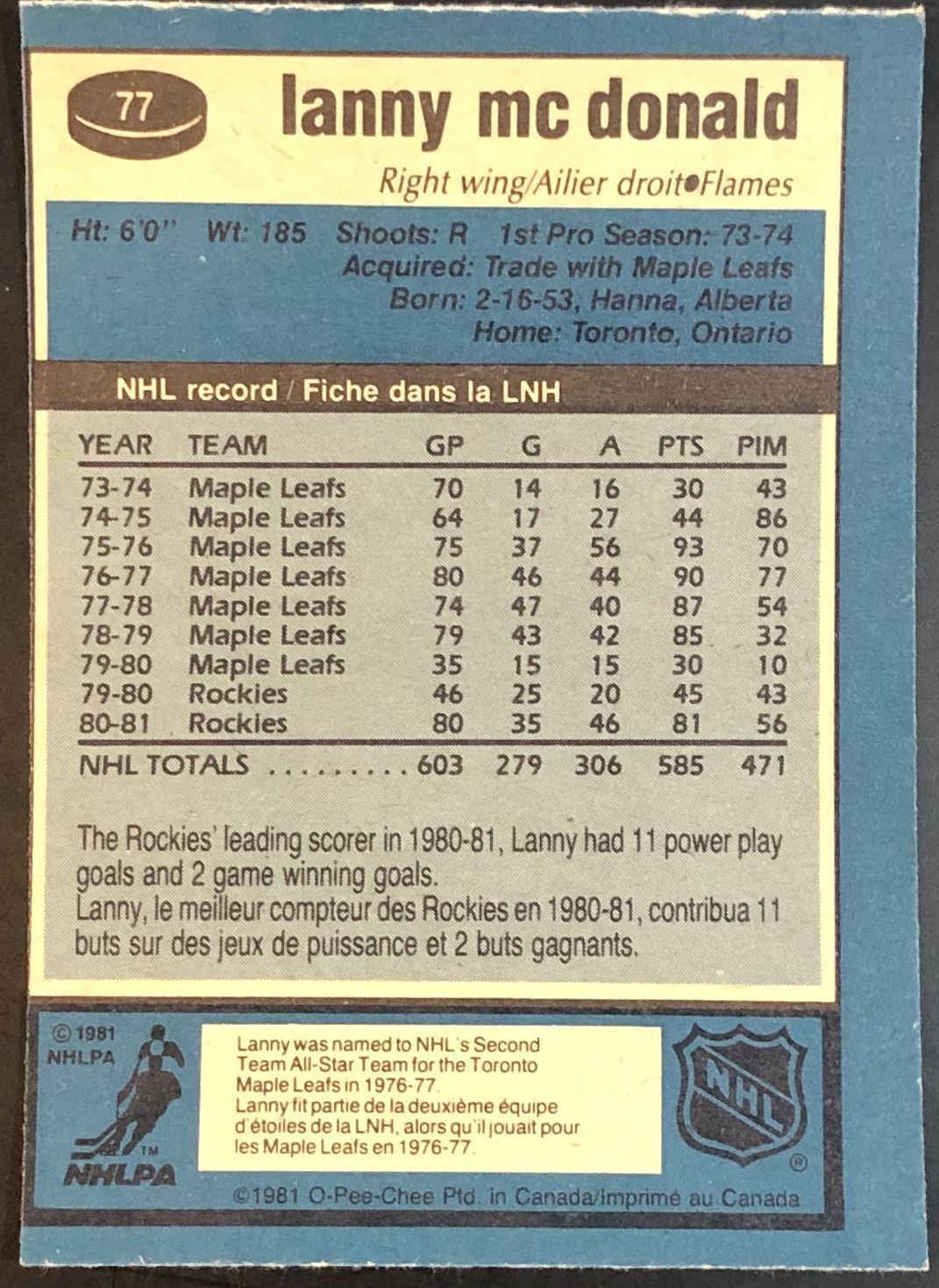 Card #77 hockey, NHL, vintage, OPC, hall of fame