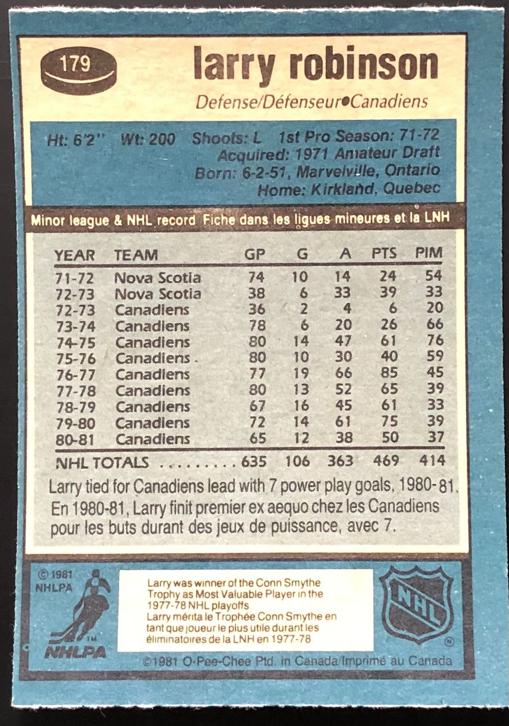 Card #179 NHL, hockey, OPC, vintage, hall of fame