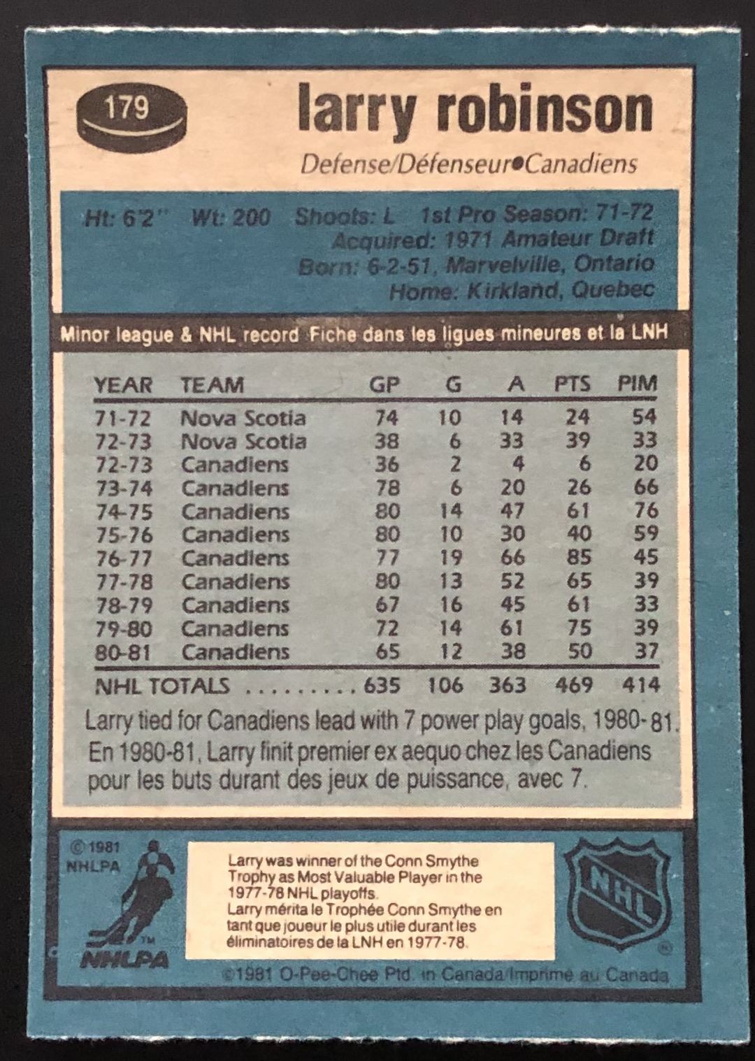Card #179 OPC, vintage, NHL, hockey, hall of fame