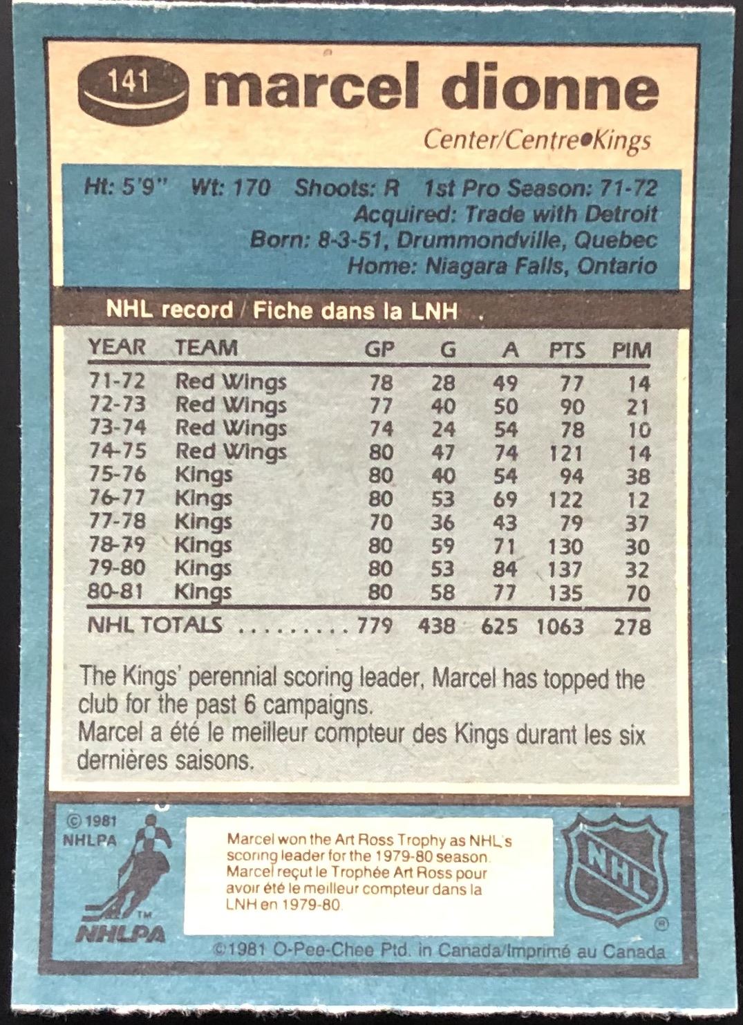Card #141 NHL, hockey, OPC, vintage, hall of fame