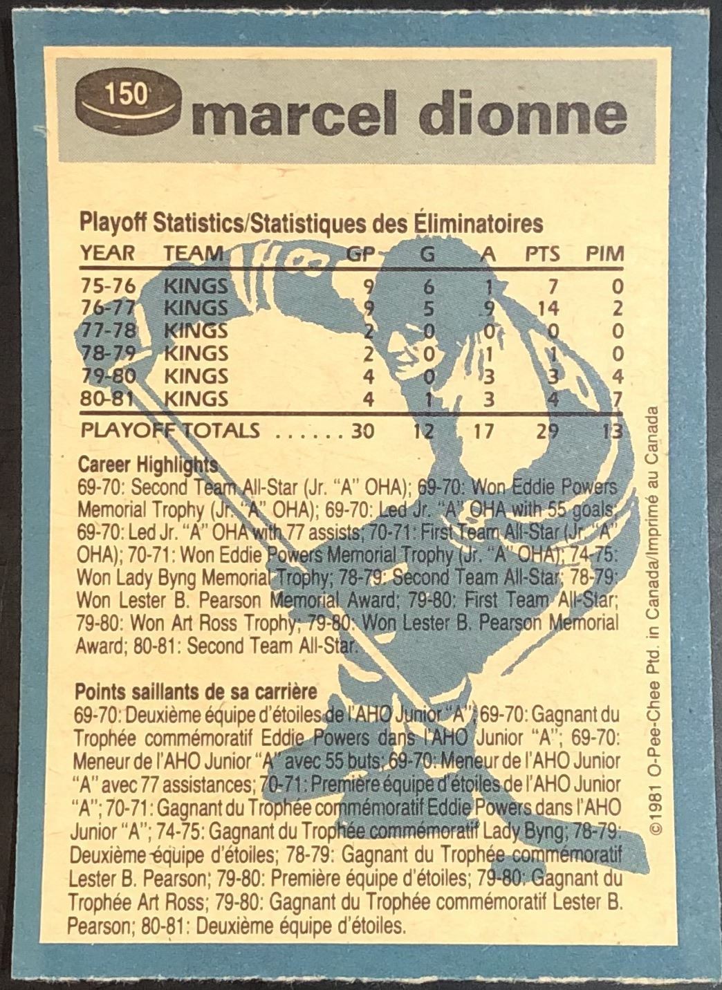 Card #150 hockey, NHL, vintage, OPC, hall of fame