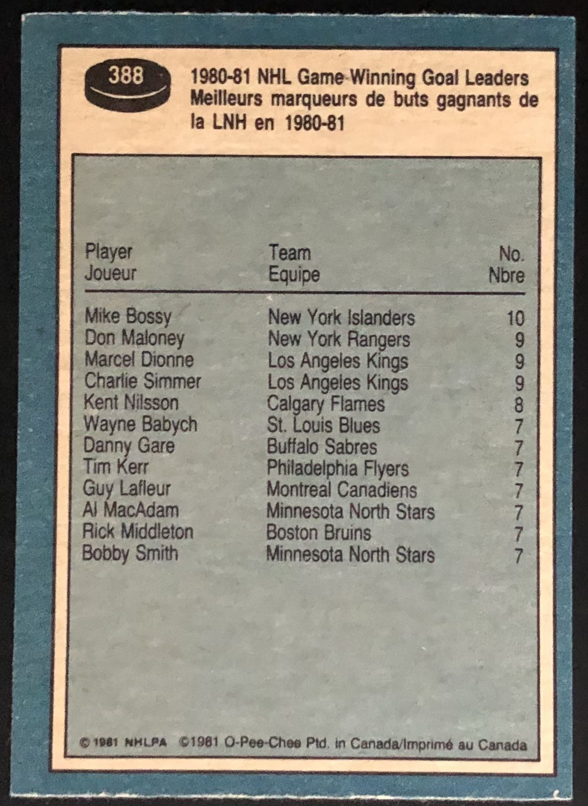 Card #388 NHL, hockey, vintage, OPC, hall of fame