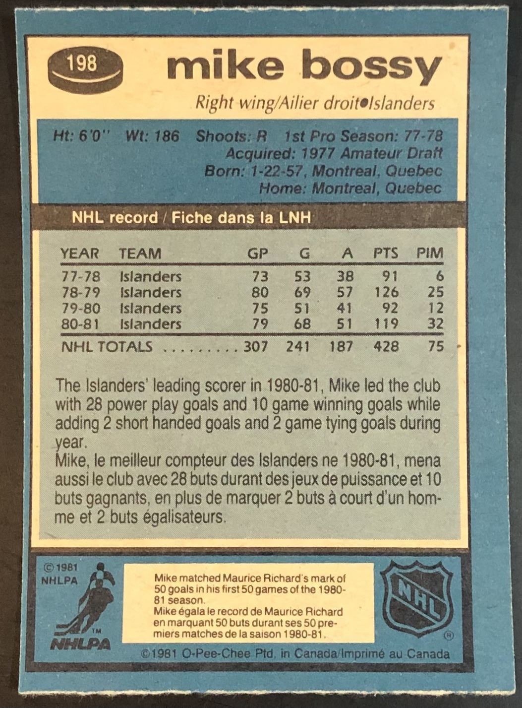 Card #198 hockey, NHL, vintage, OPC, hall of fame