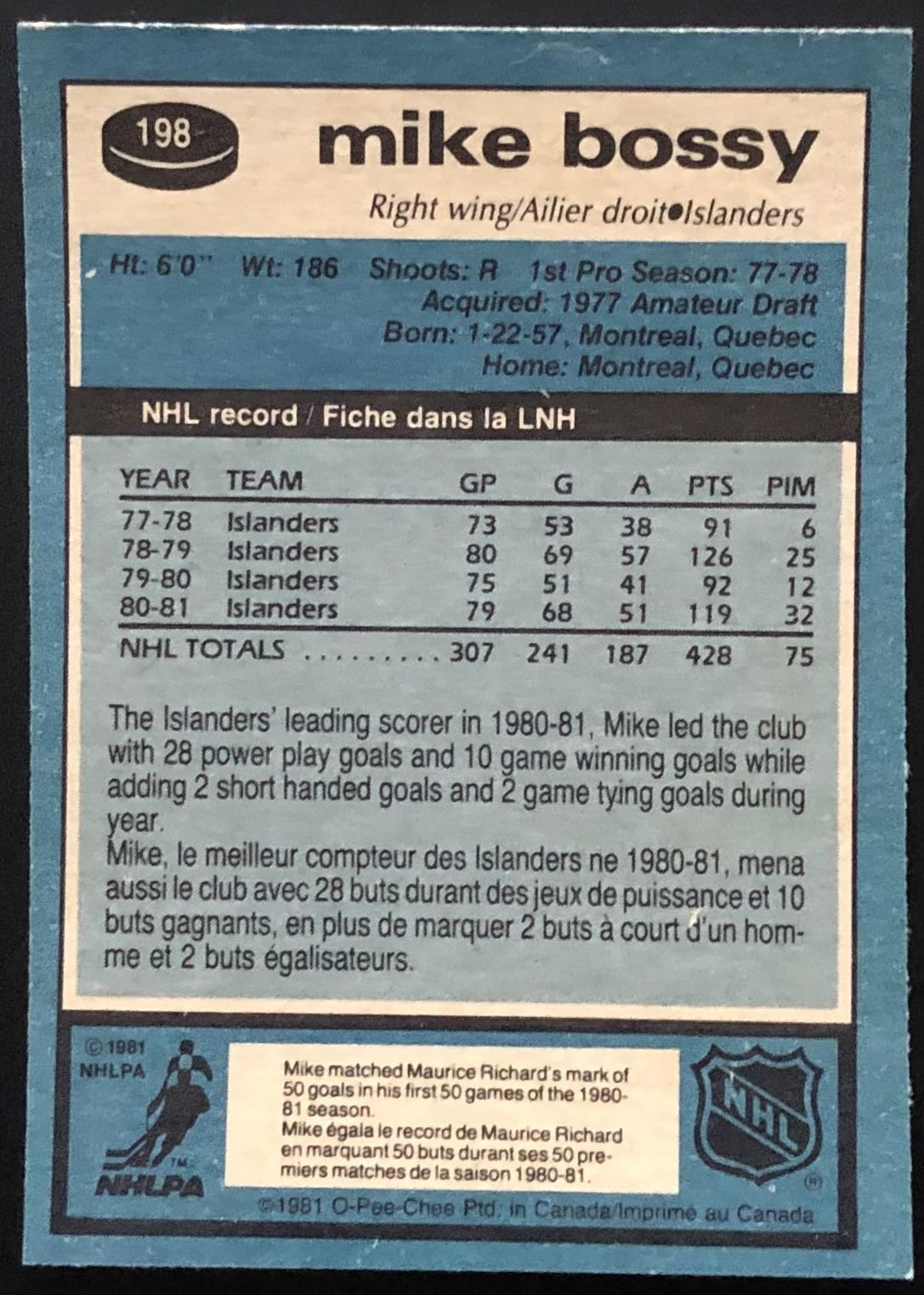 Card #198 OPC, vintage, NHL, hockey, hall of fame