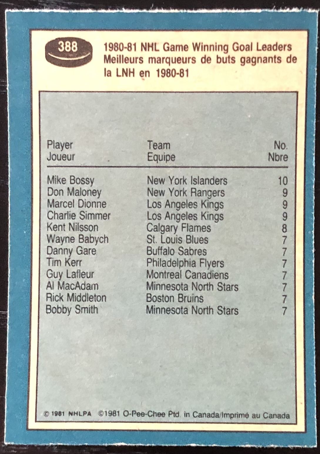 Card #388 NHL, hockey, OPC, vintage, hall of fame