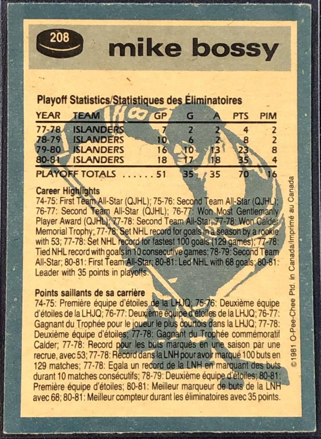 Card #208 NHL, hockey, vintage, OPC, hll of fame