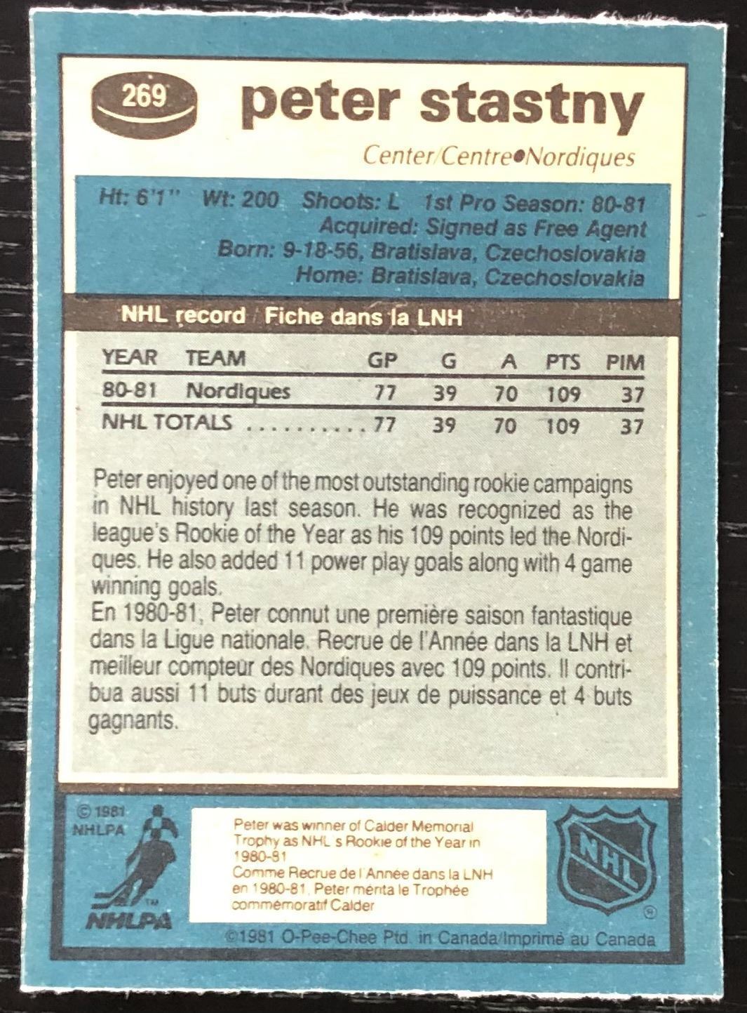 Card #269 hockey, NHL, OPC, hall of fame, rookie, vintage