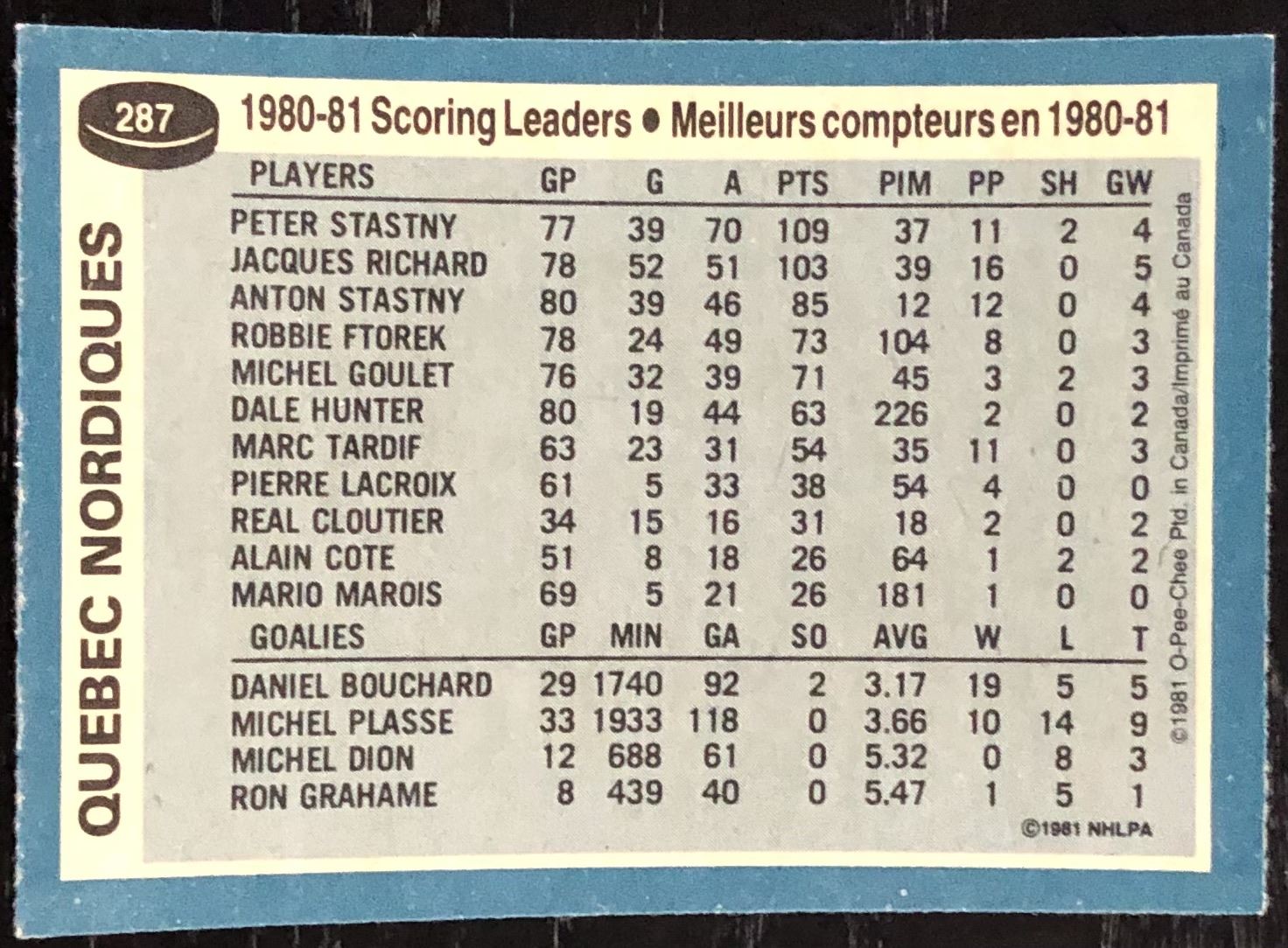 Card #287 OPC, NHL, hockey, vintage, hall of fame