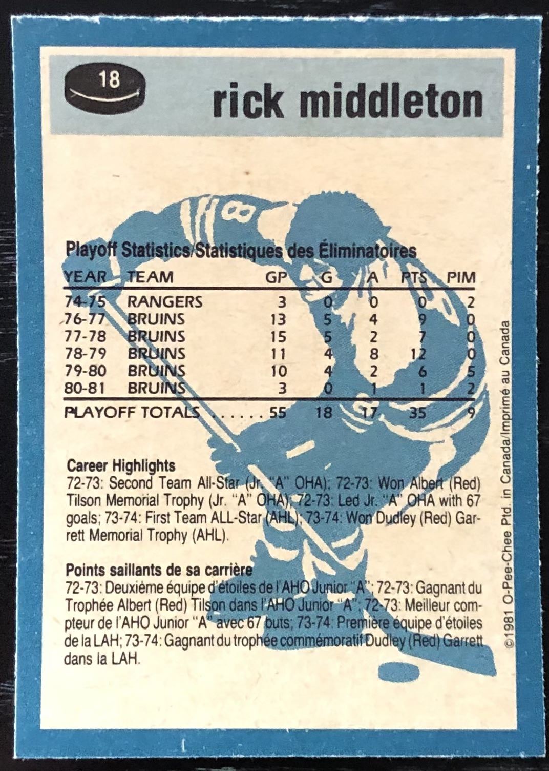 Card #18 NHL, hockey, OPC, vintage, hall of fame