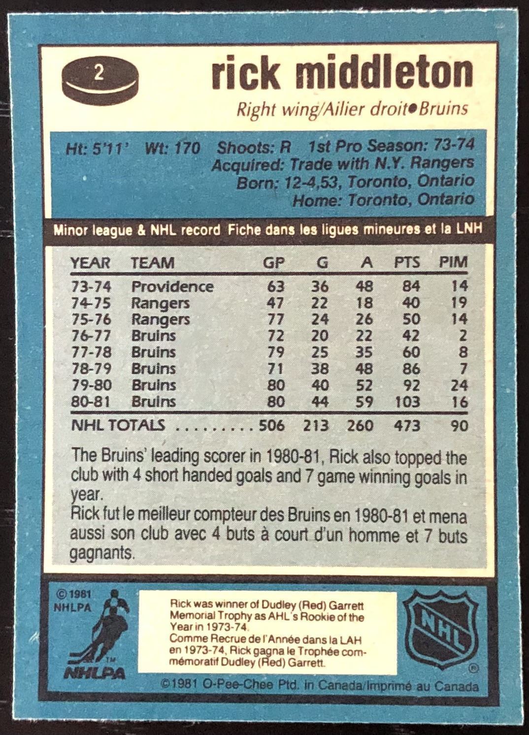 Card #2 NHL, hockey, OPC, vintage, hall of fame