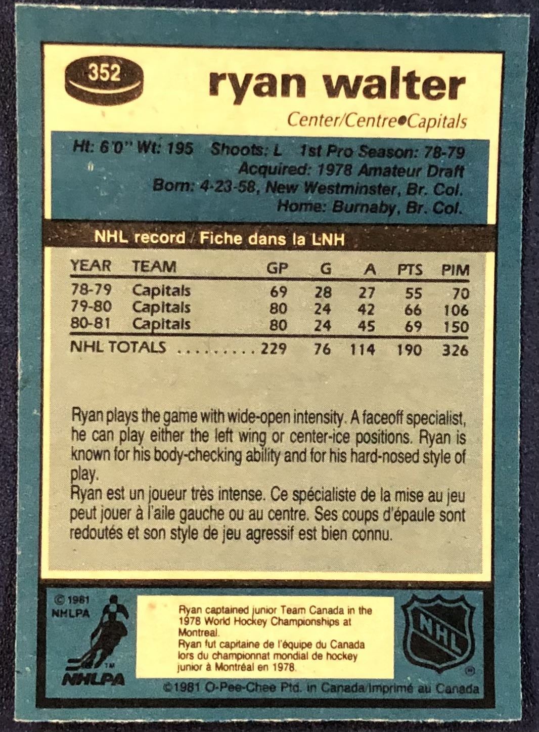 Card #352 NHL, hockey, OPC, vintage