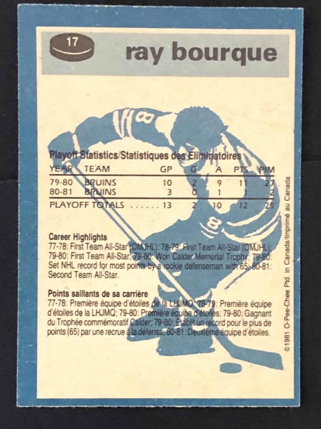 Ray Bourque SA (HOF), '81-82 O-Pee-Chee, card #17