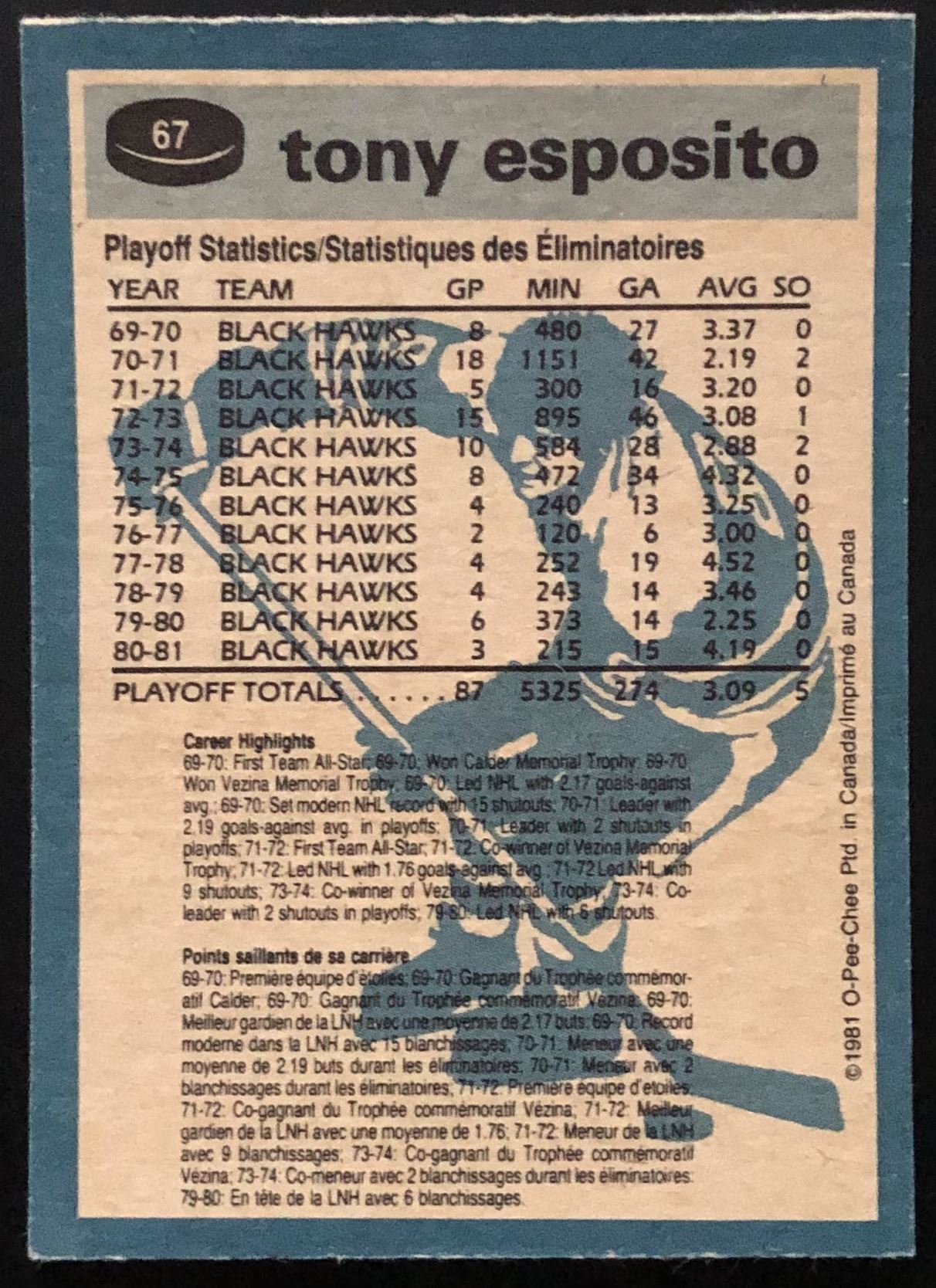 Card #67 NHL, hockey, vintage, OPC, hall of fame