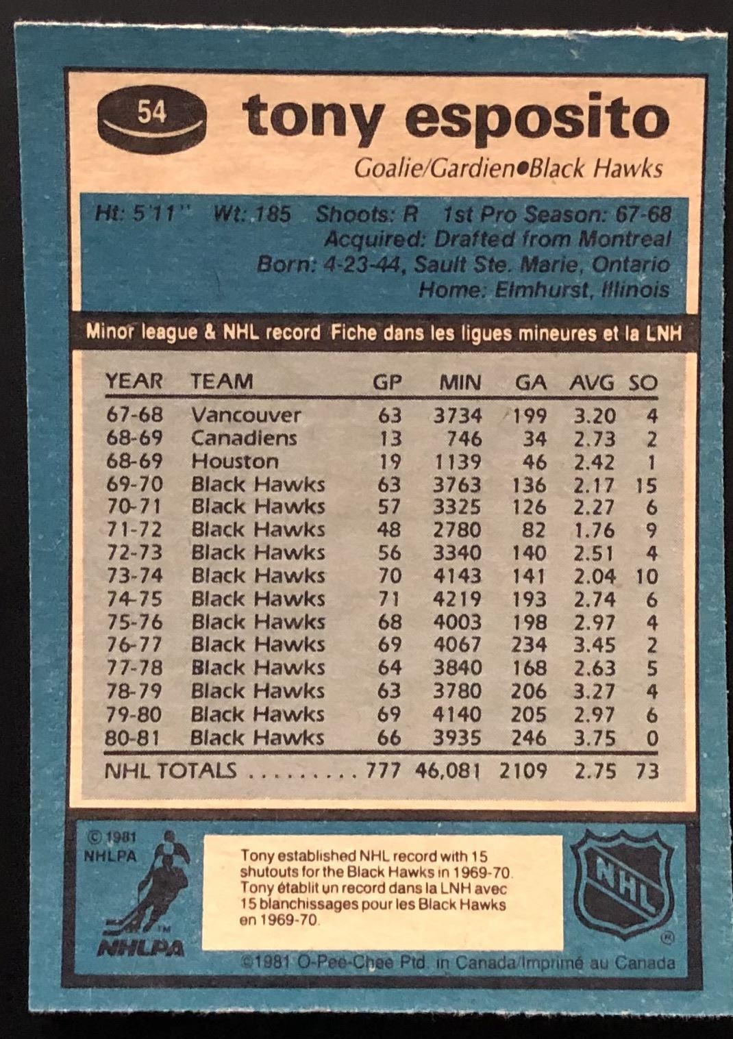 Card #54 NHL, hockey, vintage, OPC, hall of fame