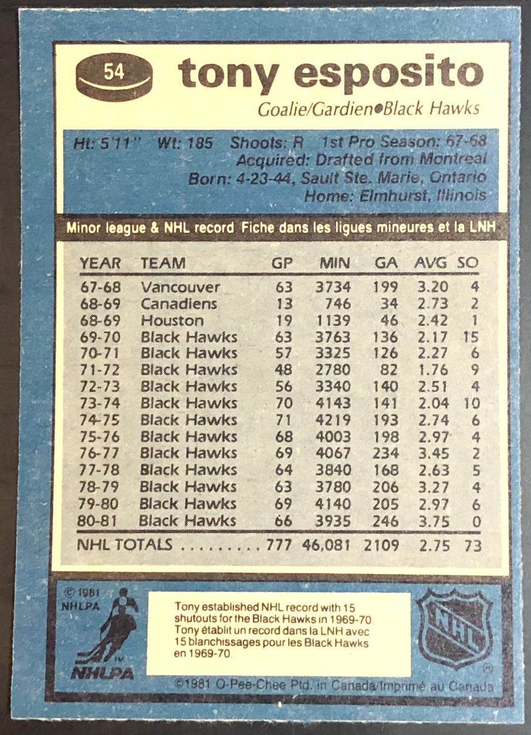 Card #54 OPC, NHL, hockey, vintage, hall of fame