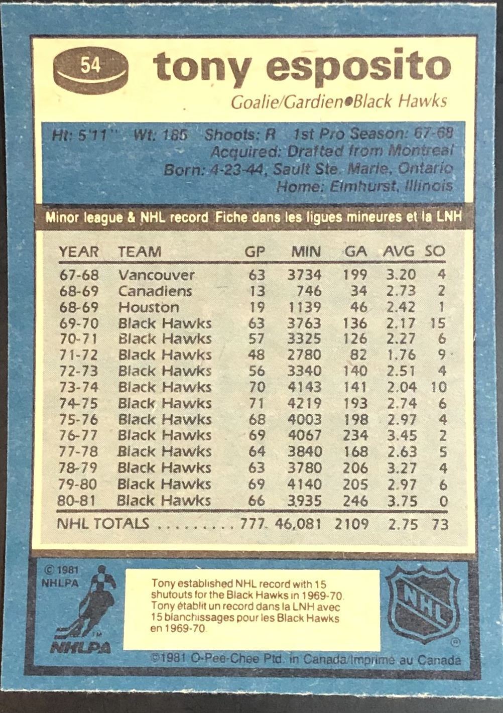 Card #54 OPC, vintage, NHL, hockey, hall of fame