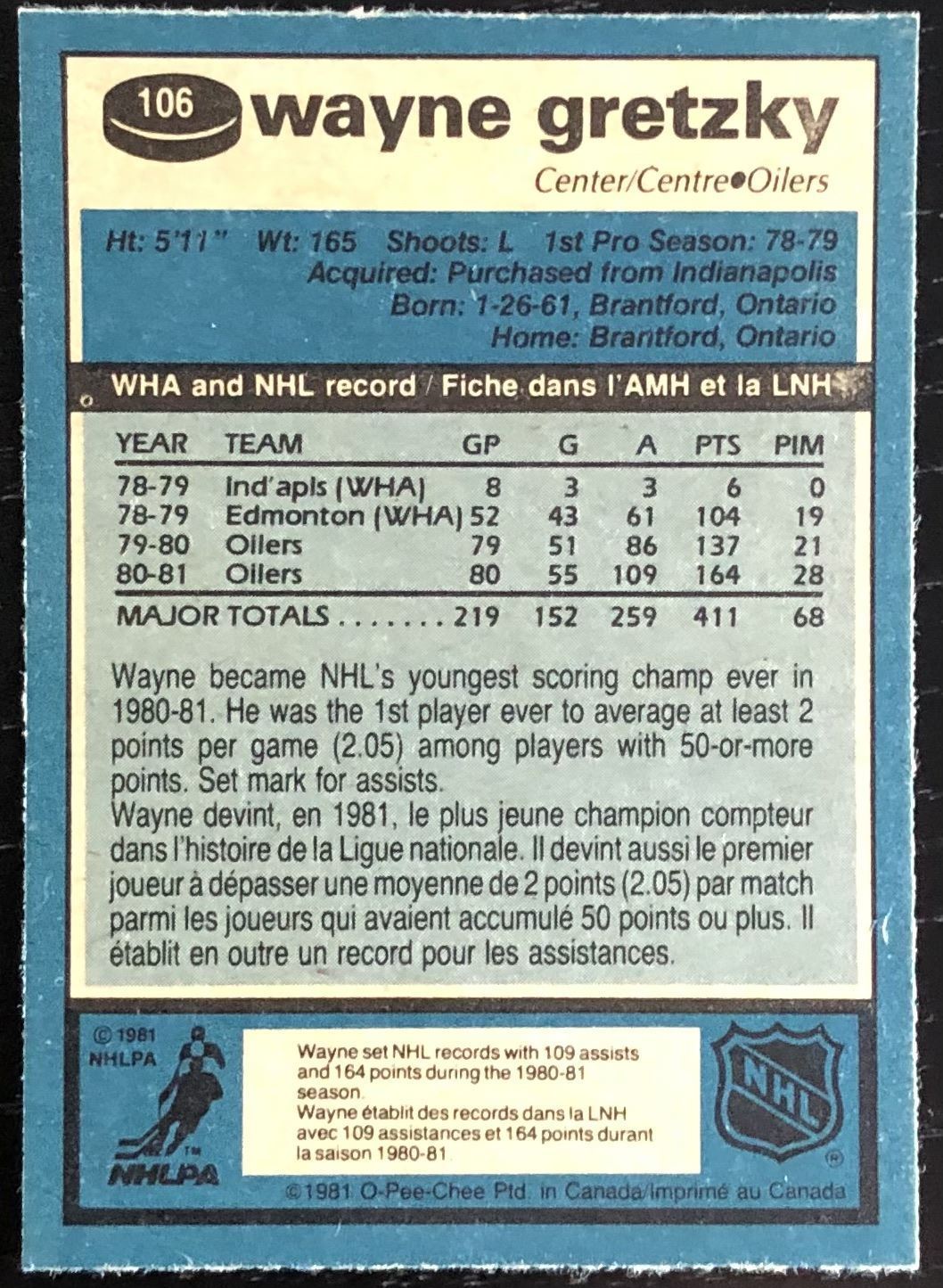 Card #106 NHL, hockey, vintage, OPC, hall of fame