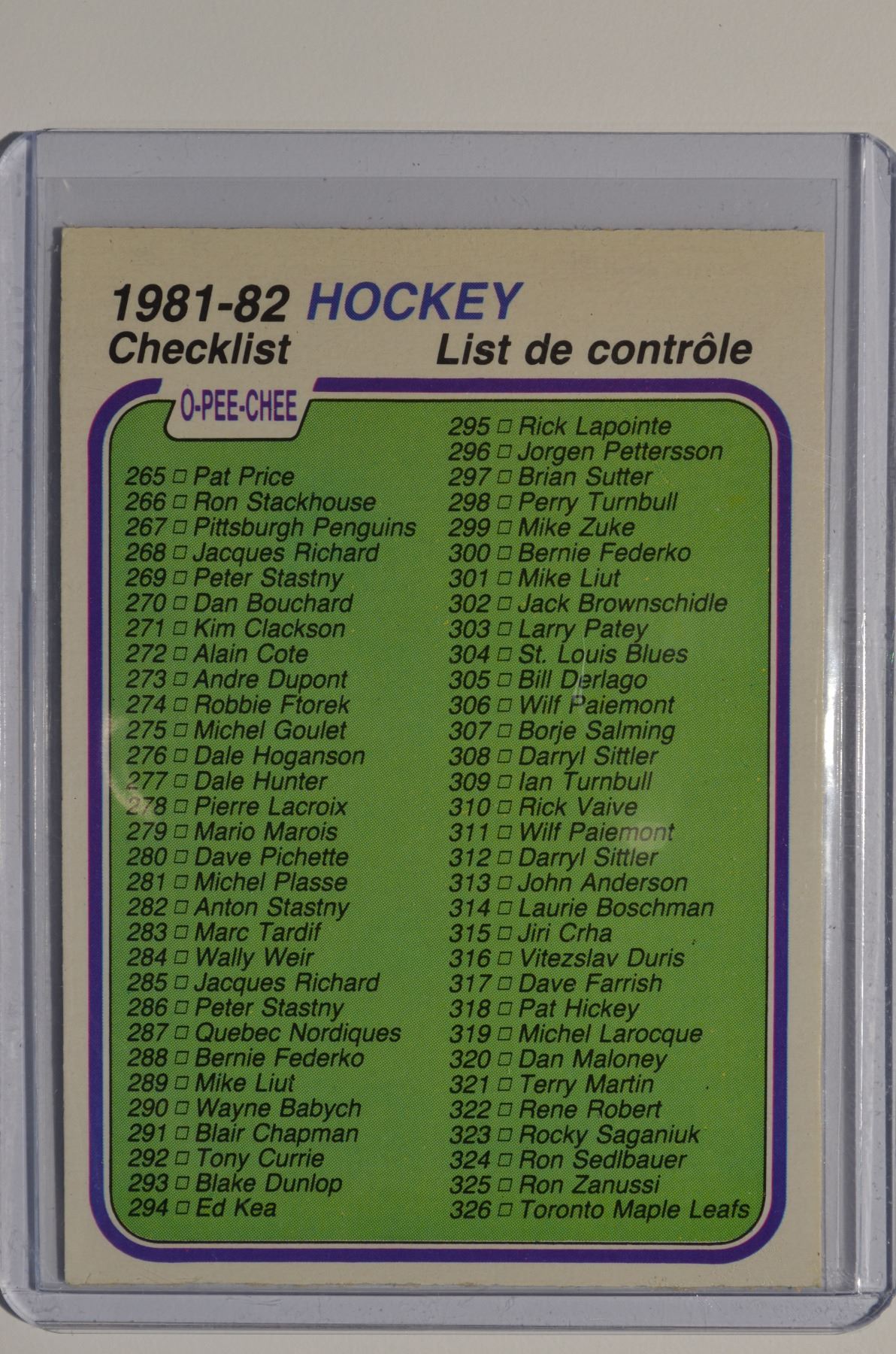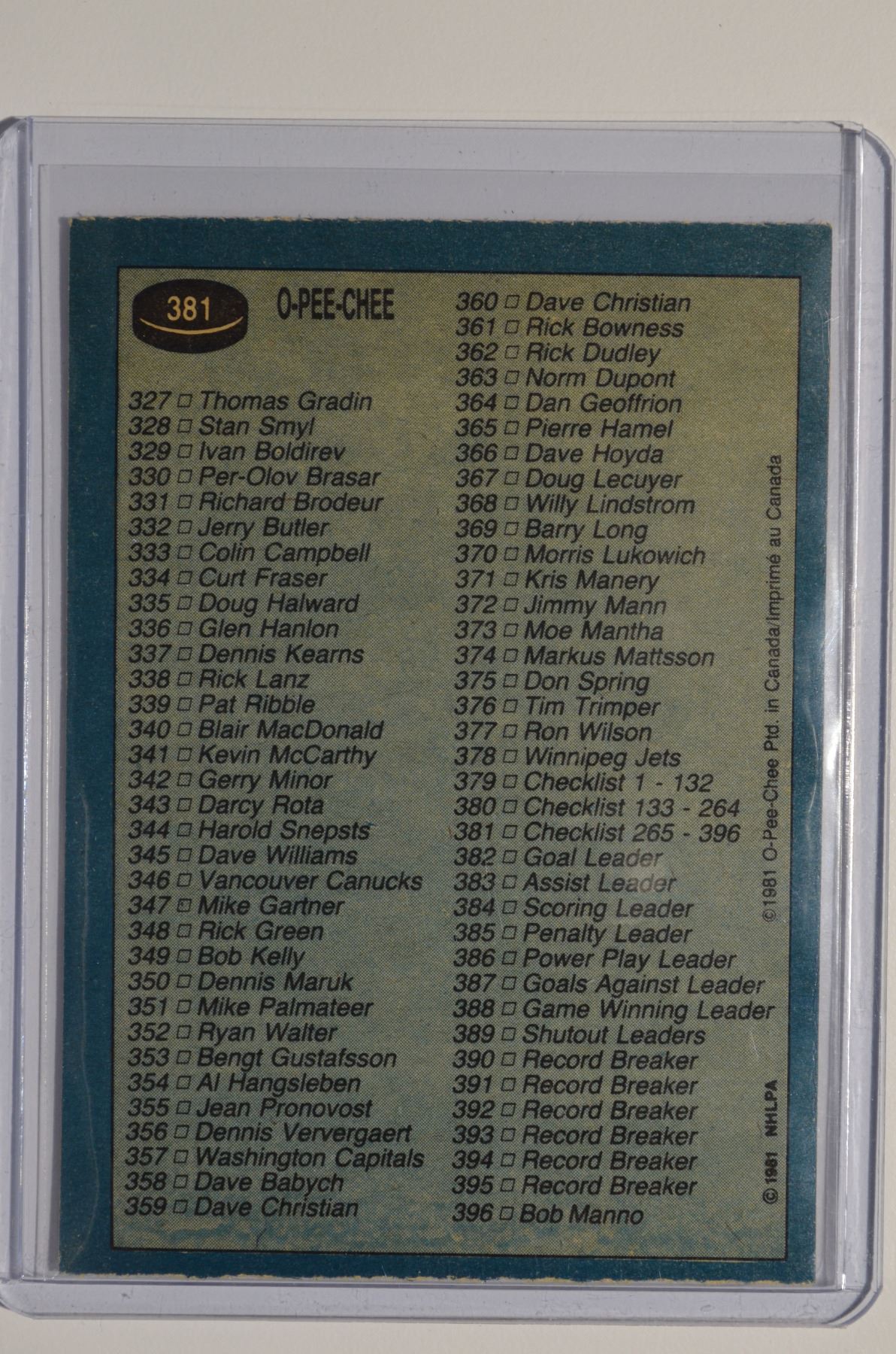 1981-82 O-Pee-Chee #381 Checklist 265-396