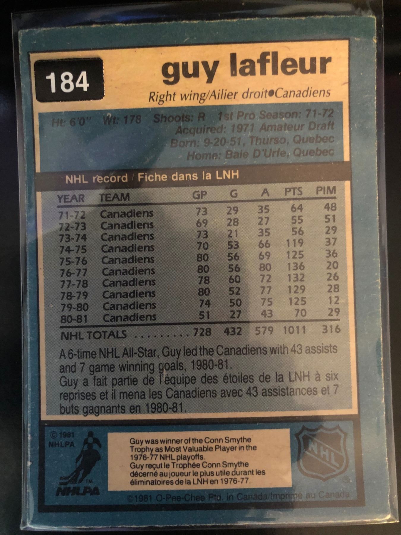 1981-82 O-Pee-Chee Guy Lafleur Card #177