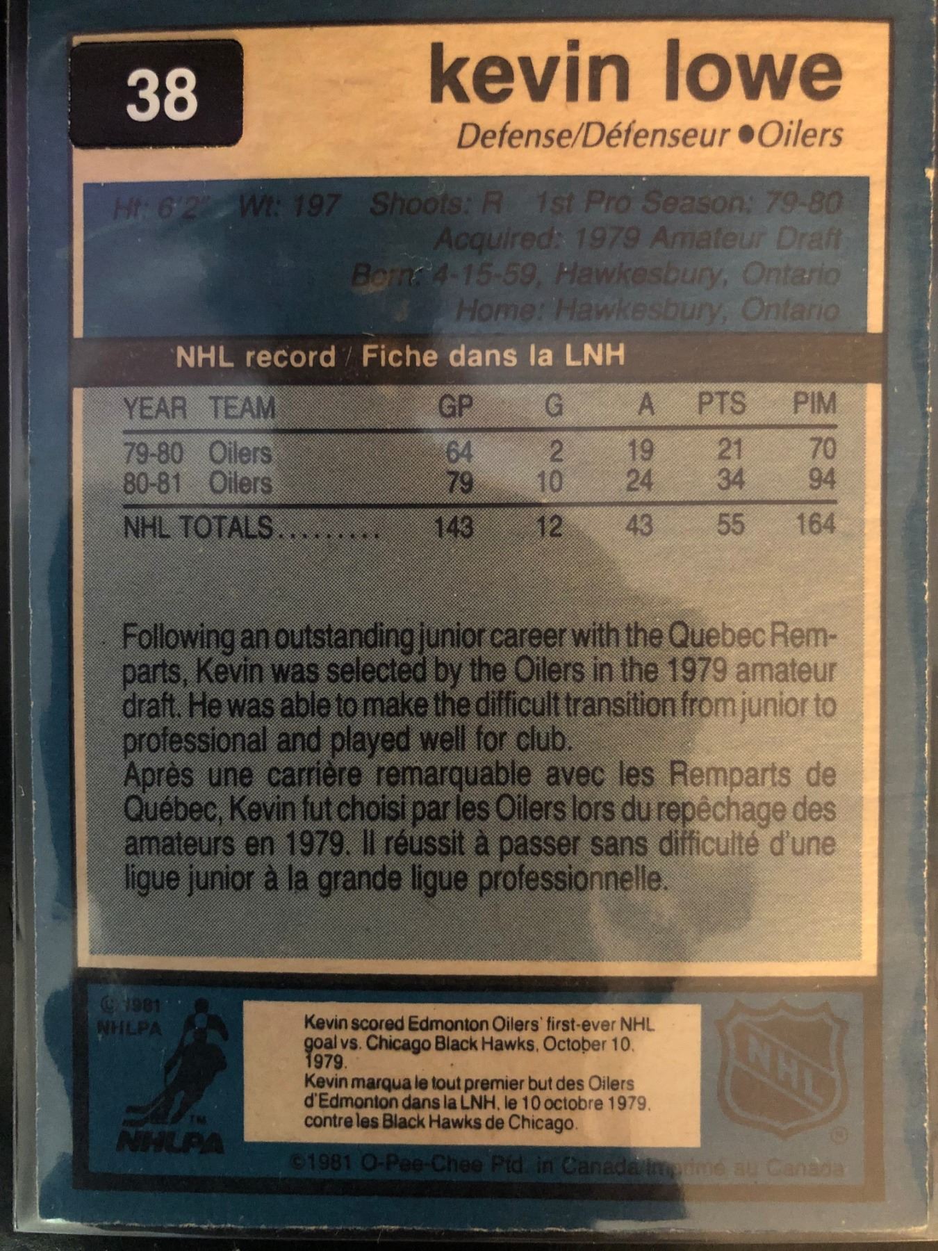 1981-82 O-Pee-Chee Rookie Kevin Lowe Card #117
