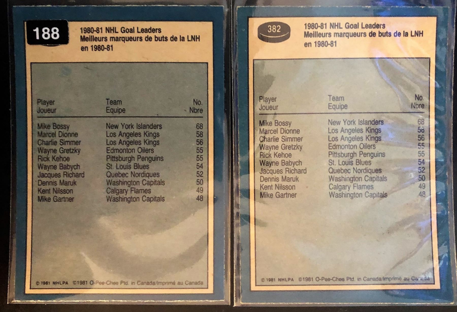 1981-82 O-Pee-Chee X 2 Mike Bossy Card #382 80-81 NHL Goal Leader