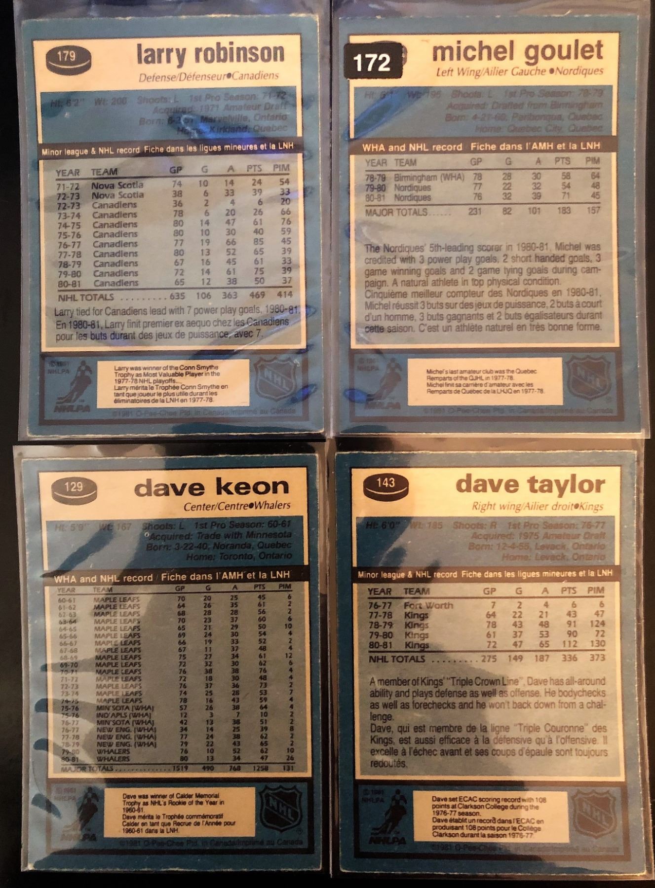 Dave Taylor #143,and Dave Keon #129 Low Grade