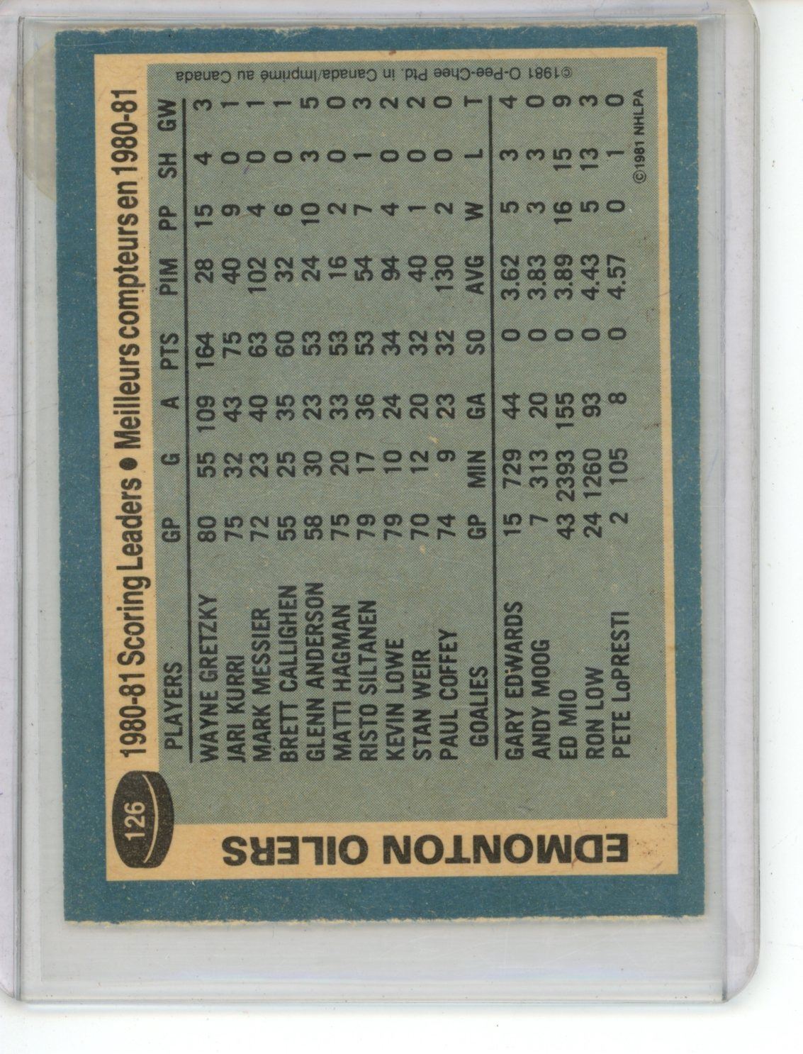 1981-82 OPC #126 Wayne Gretzky Oiler Leader