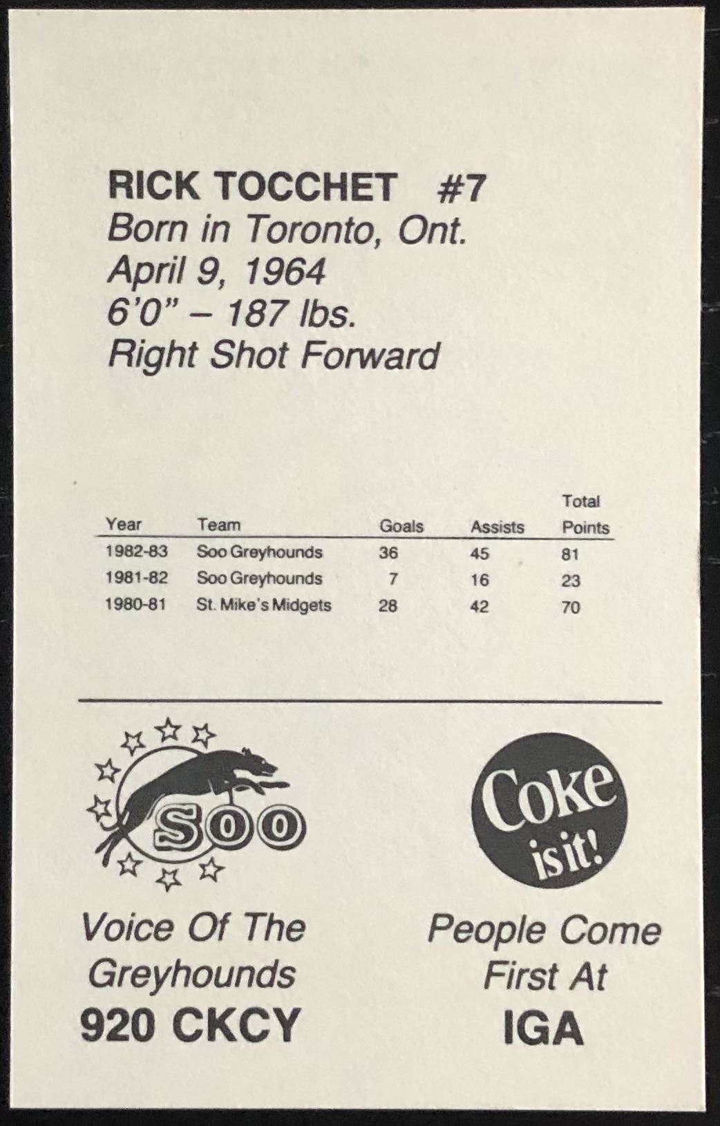 Card #7, Soo Greyhounds set issued by Sault Ste. Marie regional police CHL, OHL, hockey, regional, hall of fame