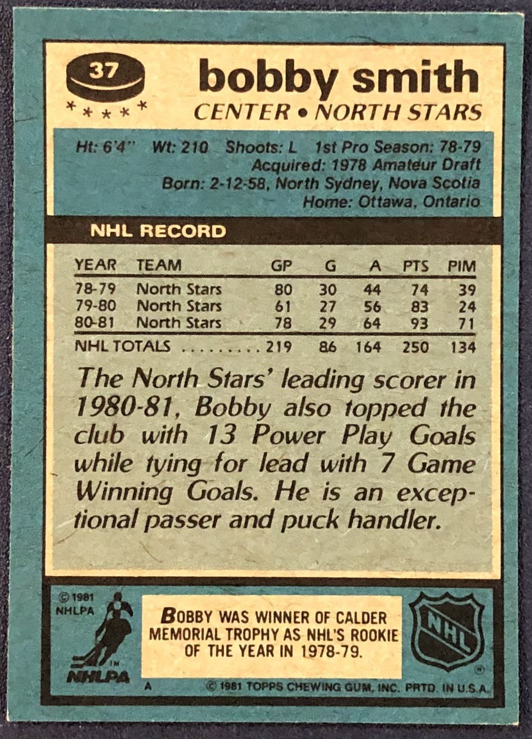 Card #37 NHL, hockey, vintage
