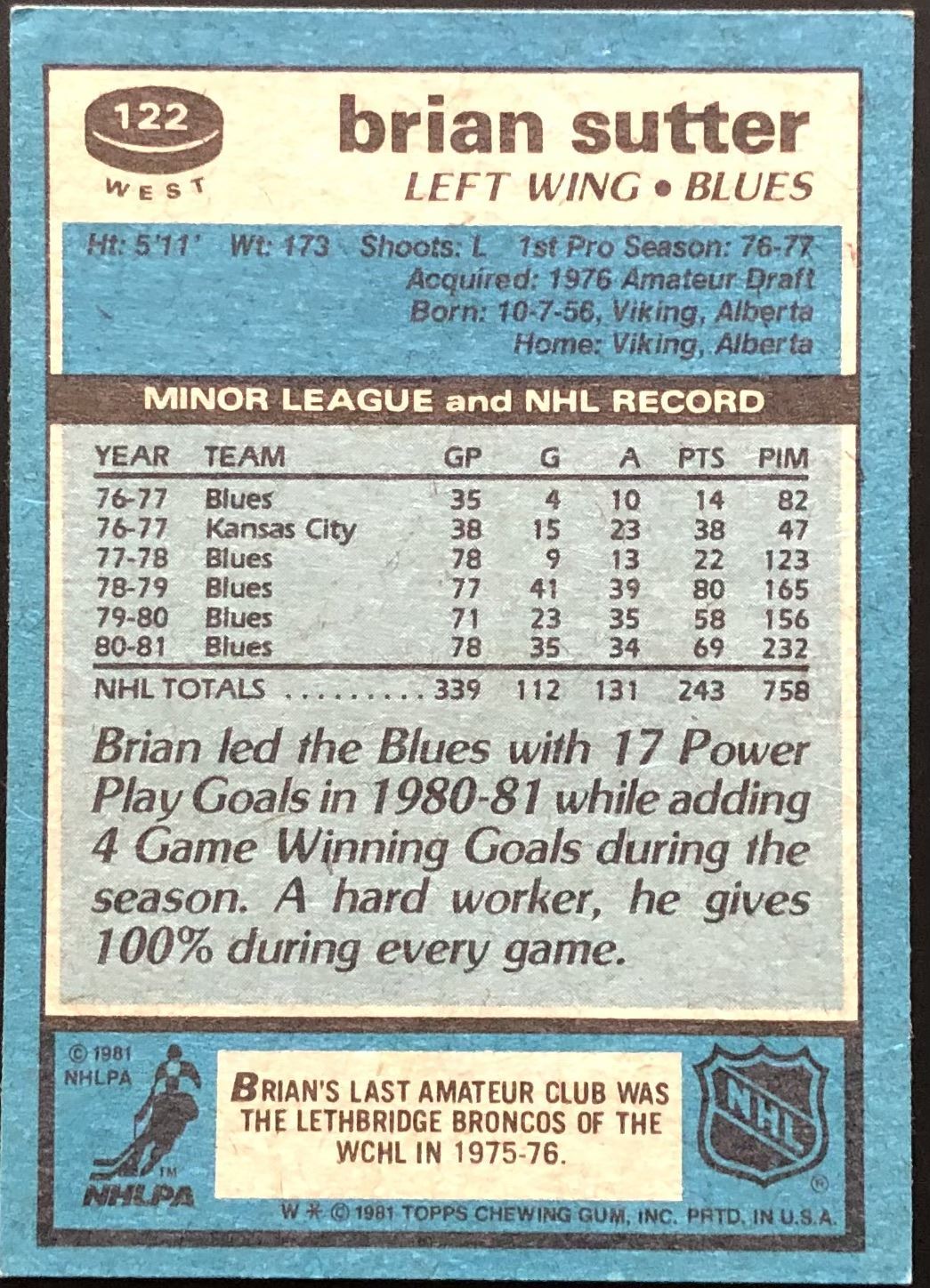 Card #122 NHL, hockey, vintage