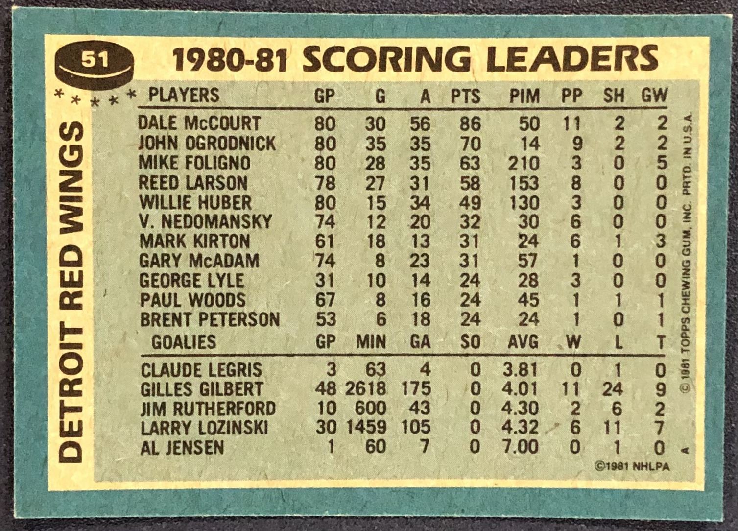 Card #51 NHL, hockey, vintage