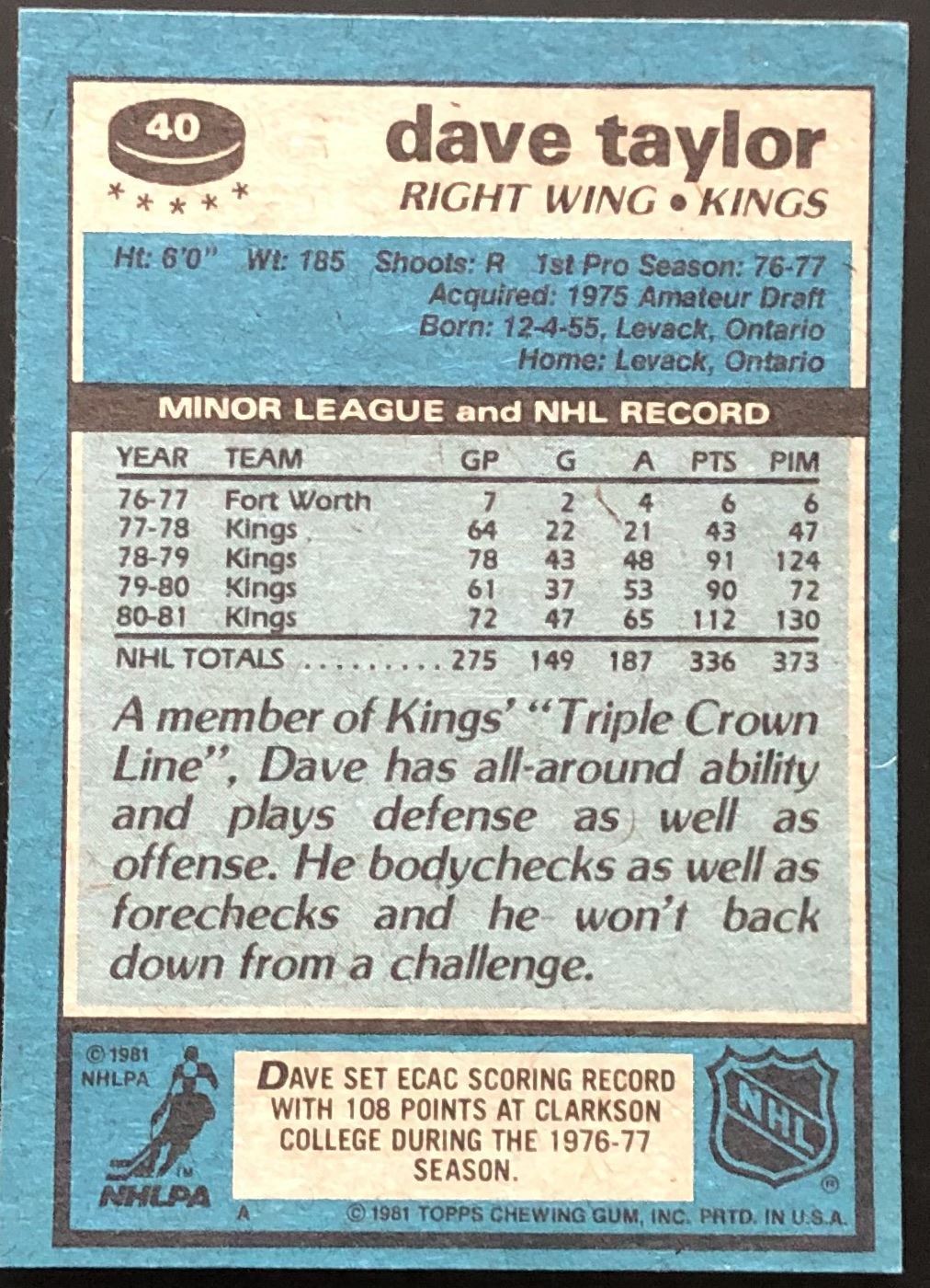Card #40 NHL, hockey, vintage, hall of fame