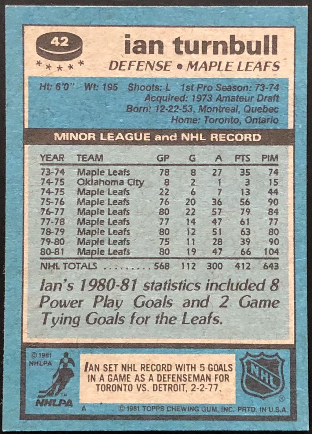 Card #42 NHL, hockey, vintage