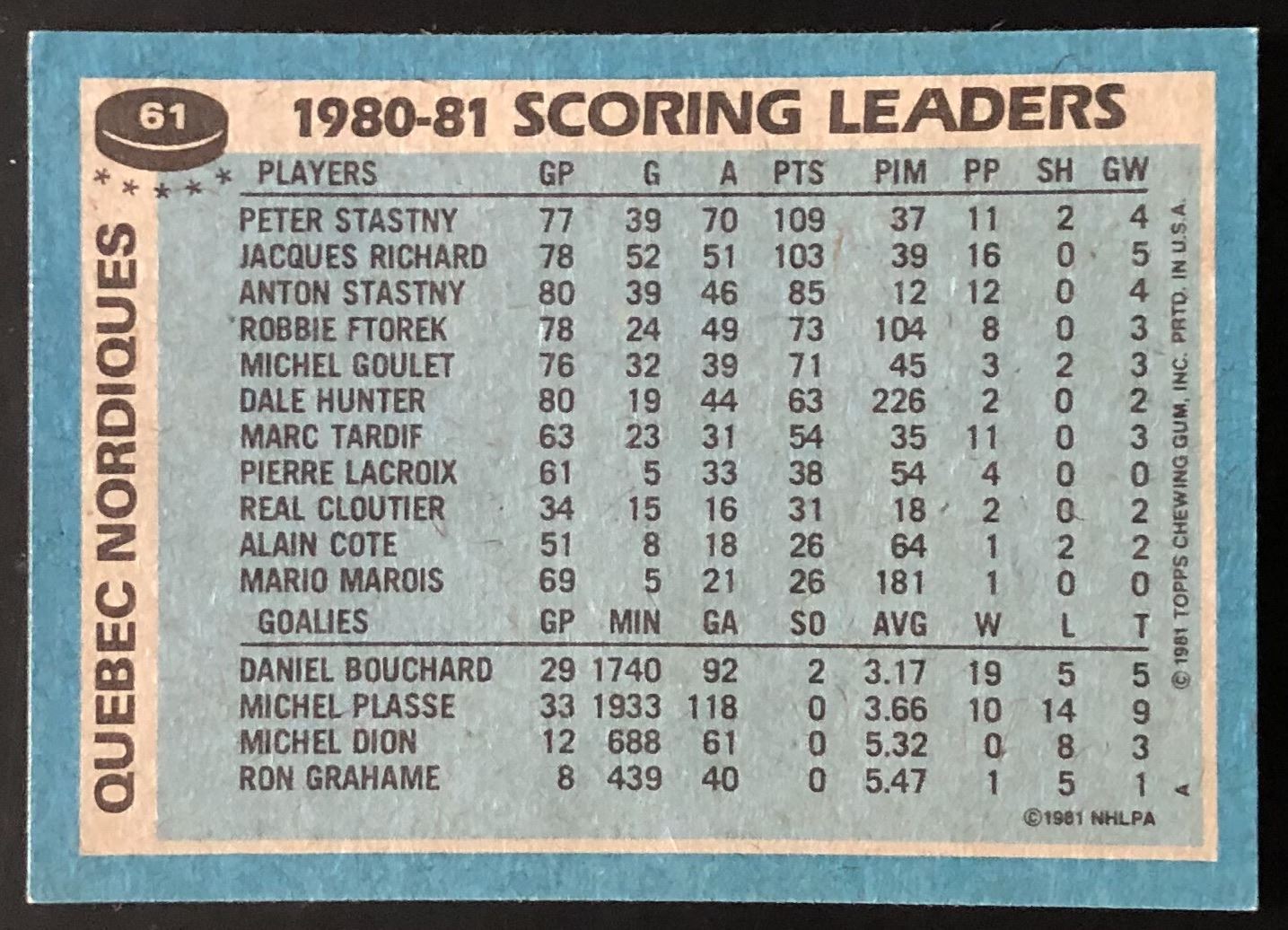 Card #61 NHL, hockey, vintage, hall of fame
