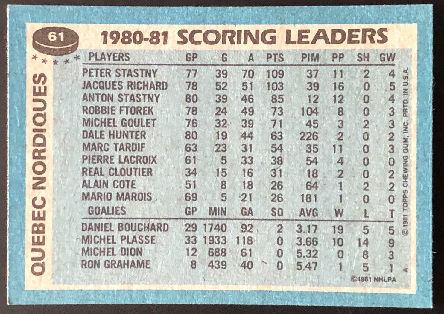 Card #61 NHL, hockey, vintage, hall of fame