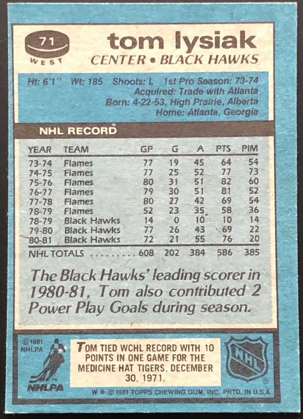 Card #71 NHL, hockey, vintage