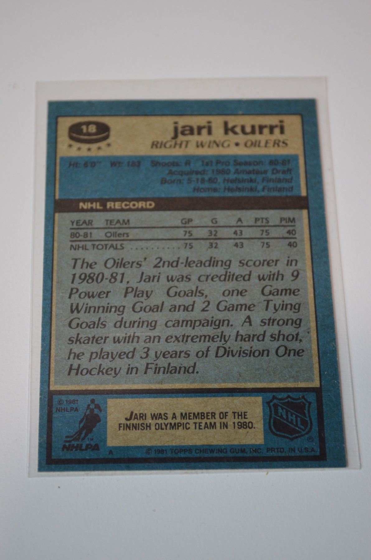 1981-82 Topps #18 Jari Kurri RC